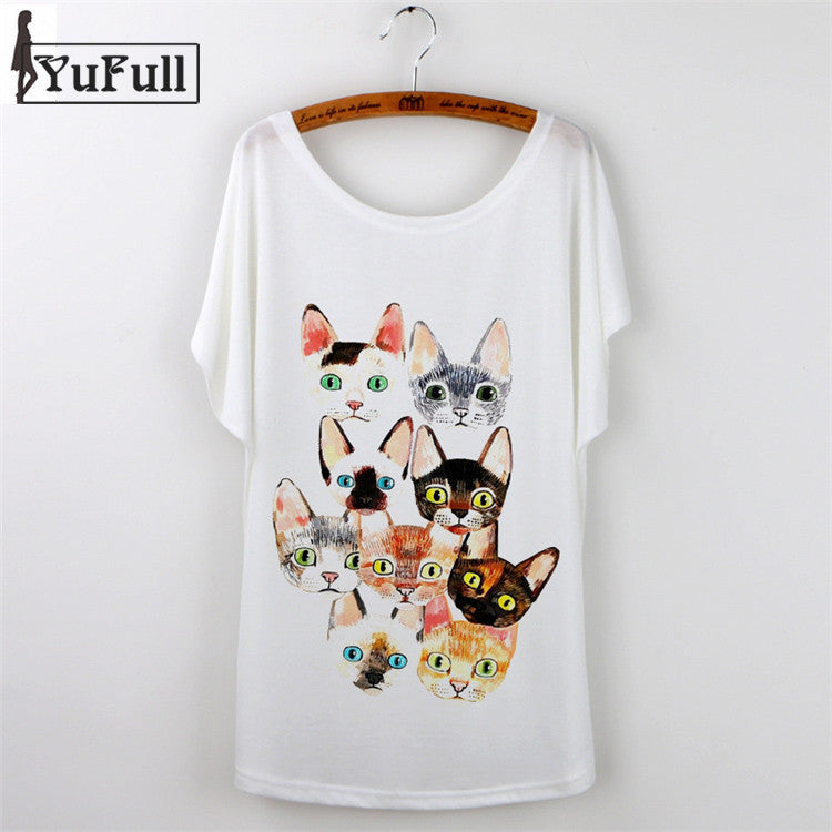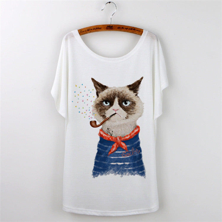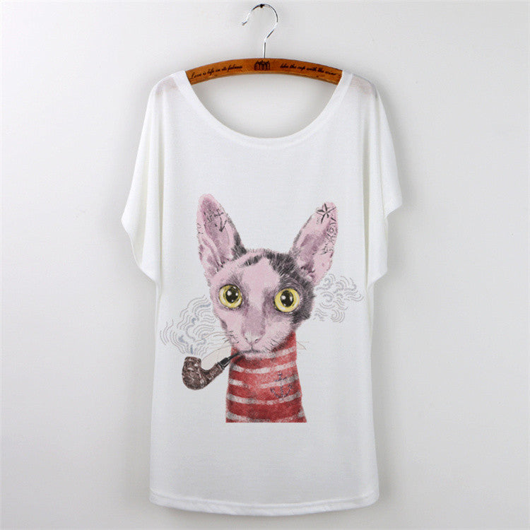 Women Clothing Ladies Tops Animal Cat Print T-shirt